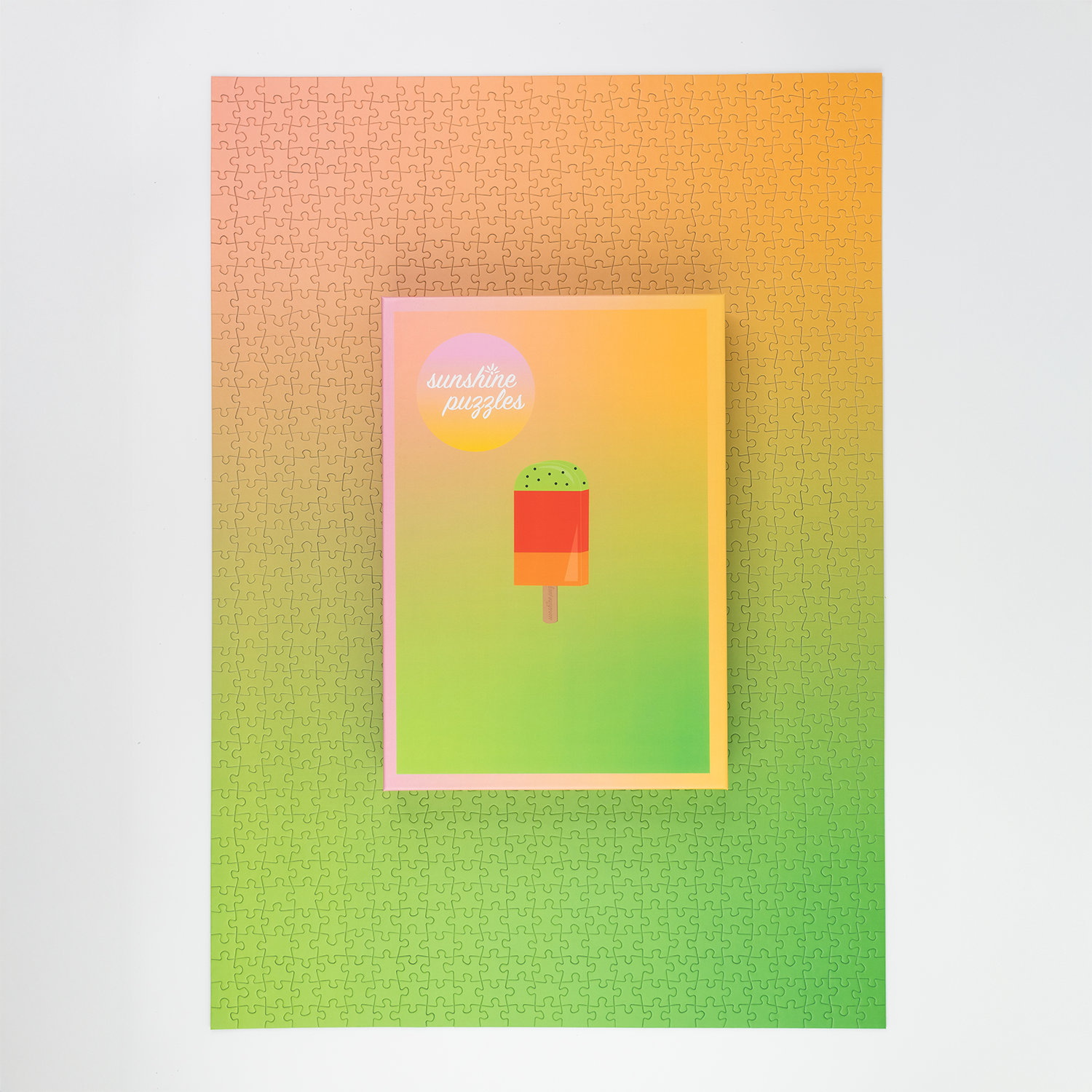 Profite de la douceur de vivre avec ce puzzle Pool Party haut en couleur ! Le dégradé de couleurs vives et le motif rafraîchissant de glace au centre créent des vibrations estivales et de la bonne humeur - parfait pour tous ceux qui aiment l'été.