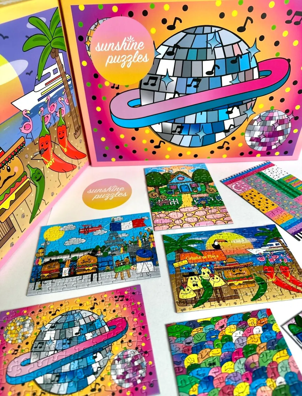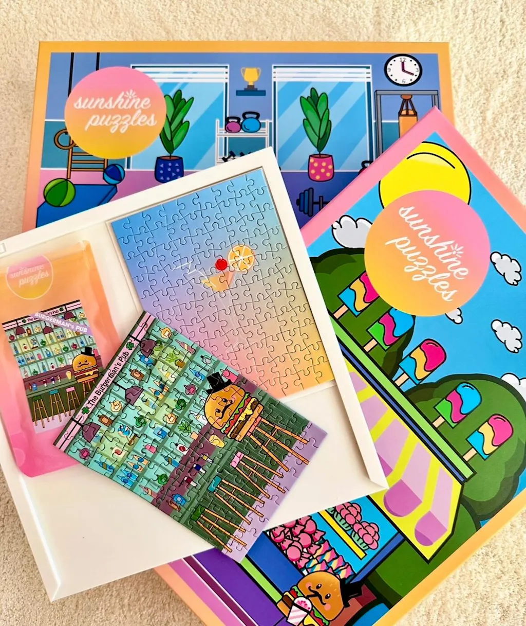 Dank der Unterstützung unserer fantastischen Community startete 2022 unsere allererste Kampagne ‚Happy Sunshine‘ auf Kickstarter. Drei liebevoll gestaltete Puzzle-Motive begeisterten die Unterstützer:innen und legten den Grundstein für Sunshine Puzzles.